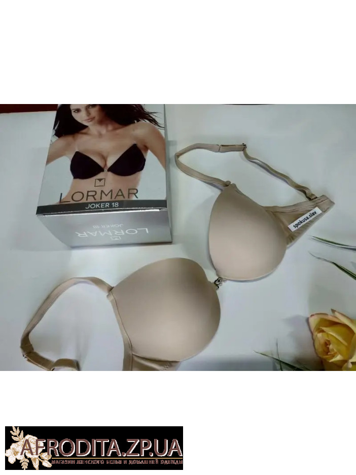 Бюстгальтер-трансформер Lormar joker з гладкими чашками пуш-ап і застібкою з переду - "сердечко ". У комплекті силіконові бретелі і подовжена бретель спини.