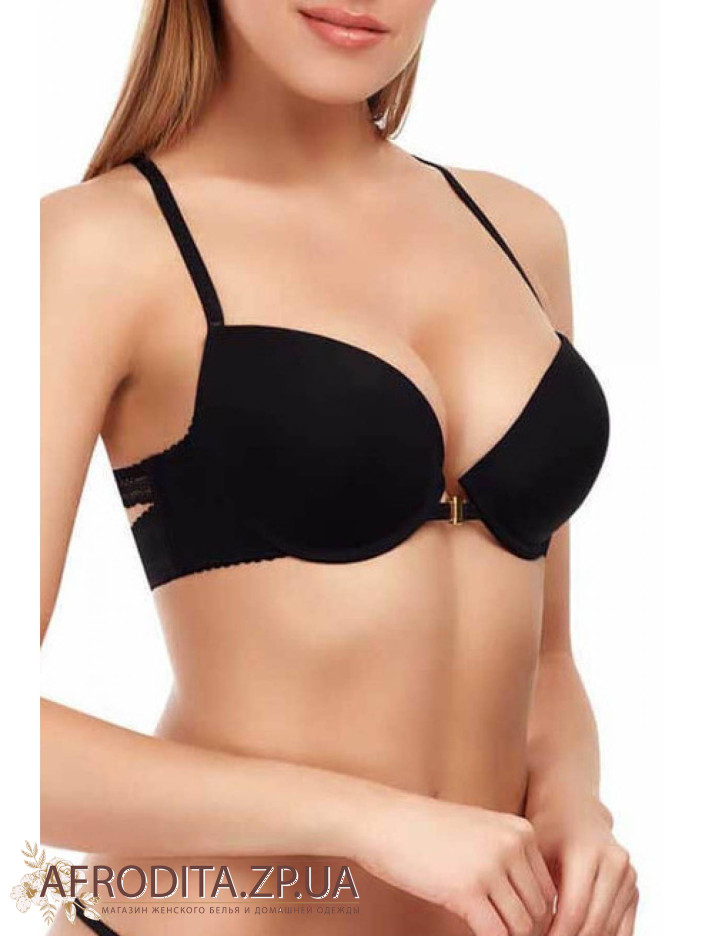 Бюстгальтер на каркасній підтримки з формованою чашкою і вбудованим «пуш-ап». Зовнішні сторони чашок з гладкою мікрофібри. Мереживна спинка з модним акцентом на перехресні бретелі. Стан з мікрофібри. Глибоке декольте, застібка між чашками спереду. Склад: 85% поліамід 15% еластан