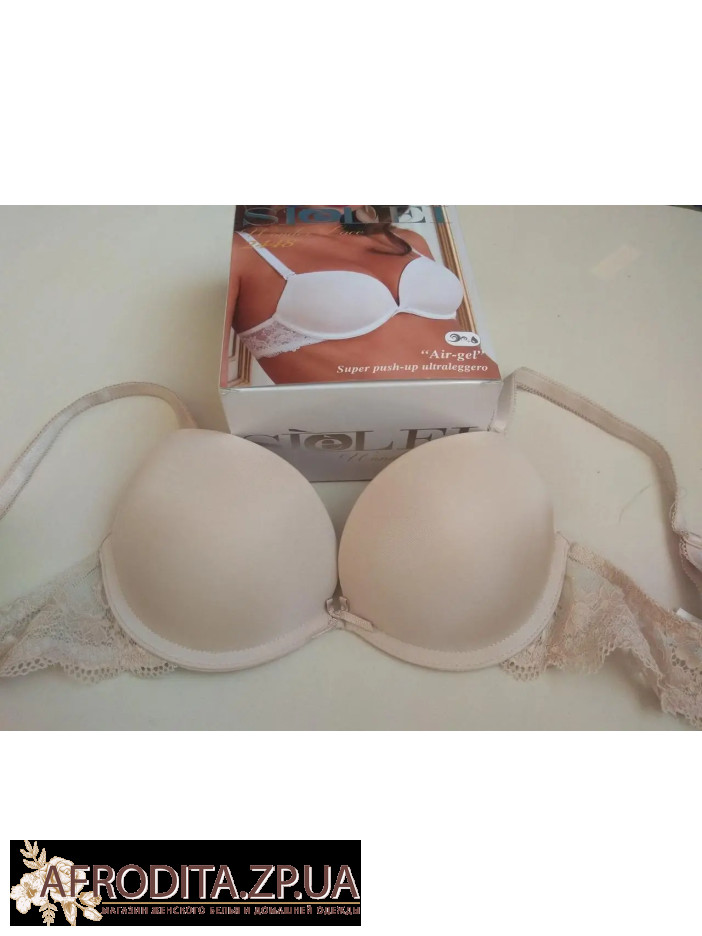 Бюстгальтер Sielei 2448 з формованою чашкою супер пуш-ап, на кісточках. Чашка гладка, стан мереживний. Бретелі знімні, регулюються по довжині. Декор - бантик. Склад: 85% поліестер, 15% еластан