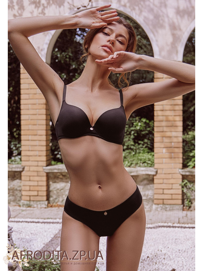 Бюстгальтер на каркасній підтримки з формованою чашкою і вбудованим «потрійним пуш-ап». Максимальний ефект розкішного декольте. Візуальне збільшення грудей на два розміри. Стан з внутрішньої сторони дубльований бавовною. Оздоблення з ефектом «прихованого каркаса». Бічні деталі з підтримуючими кісточками. Знімні бретелі. Декор - медальйон Marc & André.