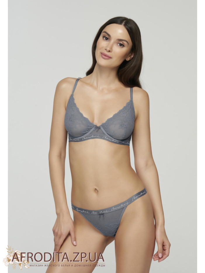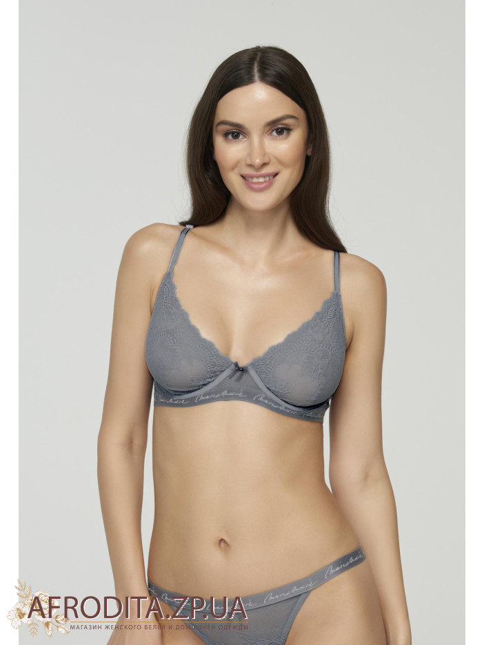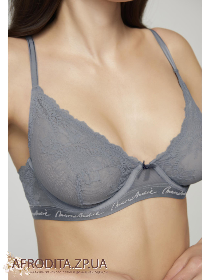 Бюстгальтер із м'якою чашкою на каркасній підтримці. Поглиблений V-подібний виріз по лінії декольте. Чашка і стан з м'якого мережива на підкладці з еластичної сітки. Мереживні кокетки на спинці. Під грудьми еластична тасьма з написом Marc & André.