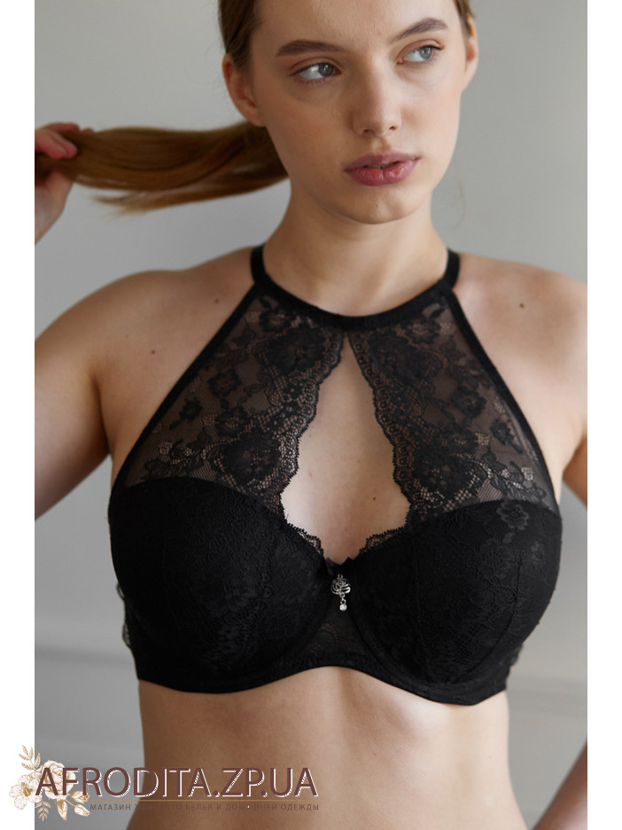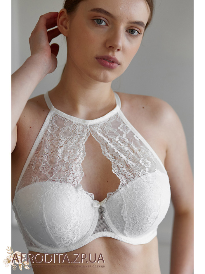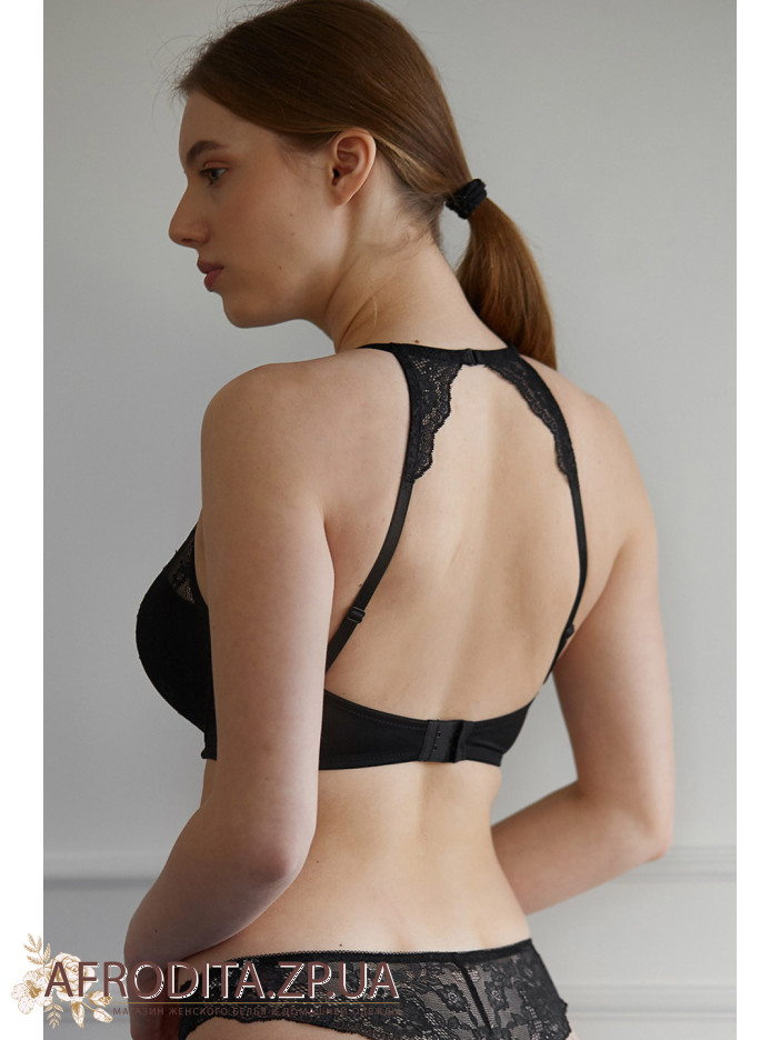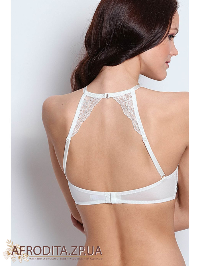 Формовані чашки, «балконет» Push-up із тонкого поролону з потовщенням у нижній частині, прикрашені еластичним мереживом. На шиї ззаду застібка-гачок. Бочки укріплені вертикальними пластинами.
