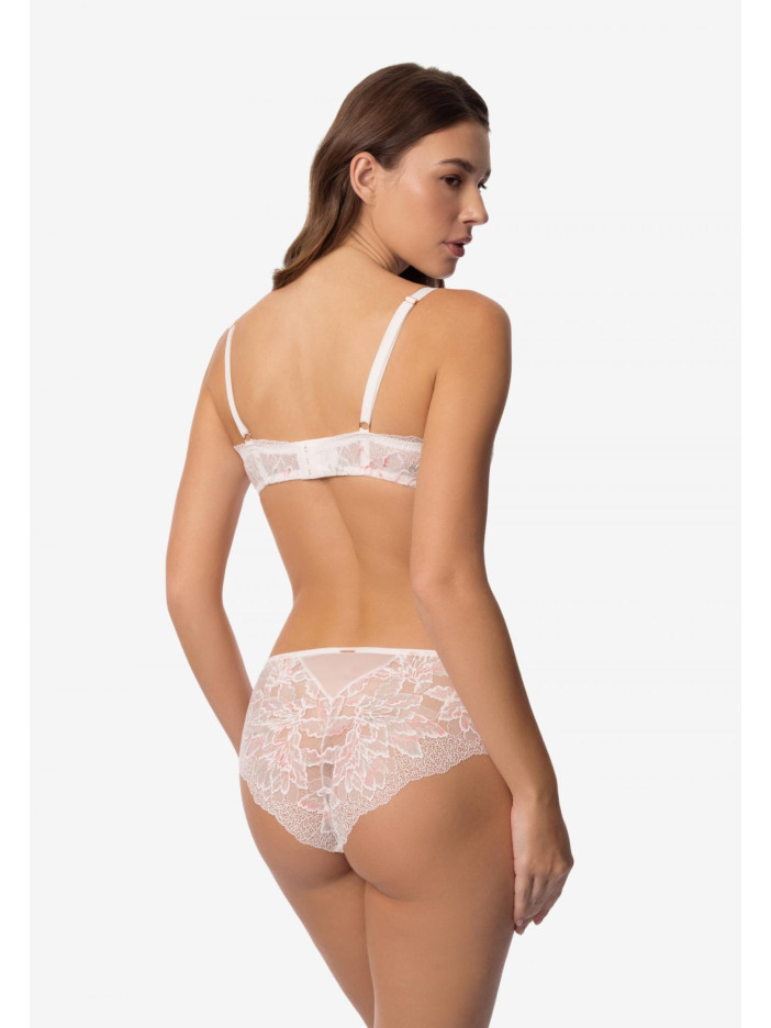 Серія ADORE – втілення чистої гармонії та ніжності. Вишукане мереживо натурального білосніжного відтінку з ажурними краями створює відчуття легкості та витонченості. Його благородна палітра – жива та радісна, але при цьому бездоганно збалансована – підкреслює природну красу та жіночність. Бюстгальтер з м'якою чашкою на кісточках дарує ідеальну посадку і підтримку. Внутрішня сторона чашок дубльована еластичною сіткою, що забезпечує комфорт і м'якість дотику до тіла. Мереживна стан на підкладці з сітки зберігає витонченість дизайну, залишаючись функціональним і зручним у носінні. Класична спинка на гачках забезпечує надійну фіксацію і комфорт протягом усього дня. ADORE — це не просто білизна, це витончене задоволення, створене, щоб ви відчували себе прекрасною кожен день