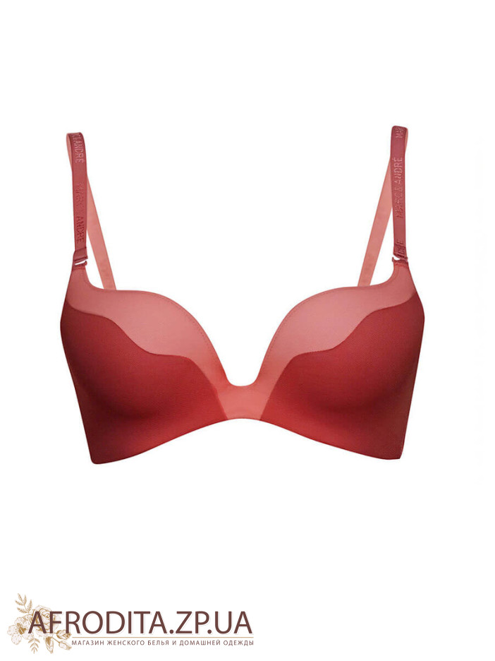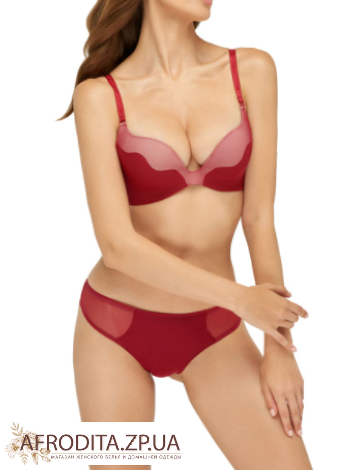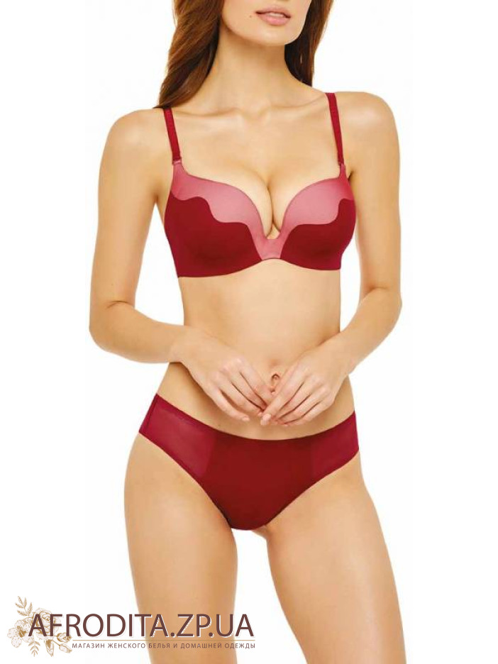 Безшовний бюстгальтер з формованою чашкою і вбудованим «Super push-up» на каркасній підтримки. Бічні деталі з підтримуючими кісточками. Знімні бретелі. Задня частина виконана з подвійною еластичною сітки. Трусики - бразилиана.