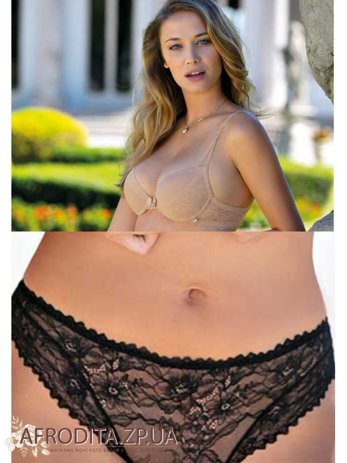 Комплект ніжньої жіночої білизни від Leilieve Виконання з ніжного мережива и мікрофібрі. Бюстгальтер на кісточках, з формування чашками push-up. Бретелі незнімні, по довжіні регулюються. Ближче до чашок бретель роздвоюється. Застібка на 2 Гачка і 4 позіції. Спинка мережівна. Декор - бантик и підвіска зі стразами между чашок. Трусики - бразіліана з СЕРЕДНЯ посадки. Листівці - бавовна.