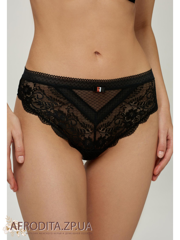 В комплекті труси-стрінги із середньою лінією талії. М'яка еластична лінощі по верхньому краю. Передня деталь із мережива та сітки. задня деталь із еластичної сітки. Декор – сатиновий бантик.