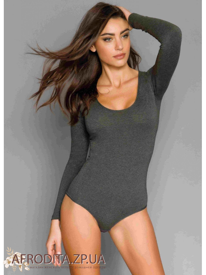 Модель виготовлена з м’якого бавовняного трикотажу (95% бавовна, 5% еластан), що забезпечує ідеальну посадку та приємні відчуття на шкірі. Довгий рукав та округлий виріз створюють елегантний силует, а нижня частина у формі трусиків сліп із застібкою на три гачки на дві позиції робить боді зручним та практичним для щоденного носіння.