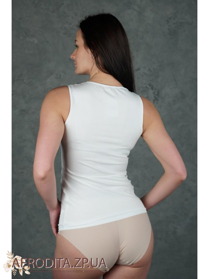 Майка від іспанського бренду Janira. На широких бретелях, з V-подібним вирізом декольте, прикрашеним мереживом. Спинка закрита. Виготовлена з м'ягкого високоякісного бавовняного трикотажу. Тканина має антипілінгову обробку, що запобігає кошлатанню та підвищує її зносостійкість.