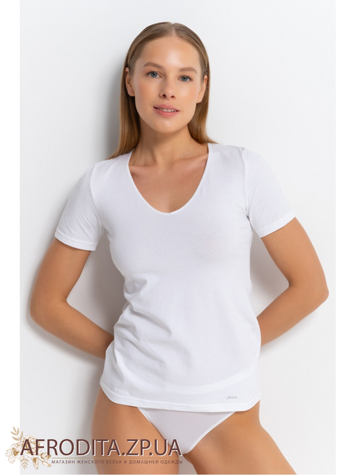 Жіноча футболка з короткими рукавами Janira 45207 виготовлена з високоякісної бавовни. Модель має округлий виріз горловини.