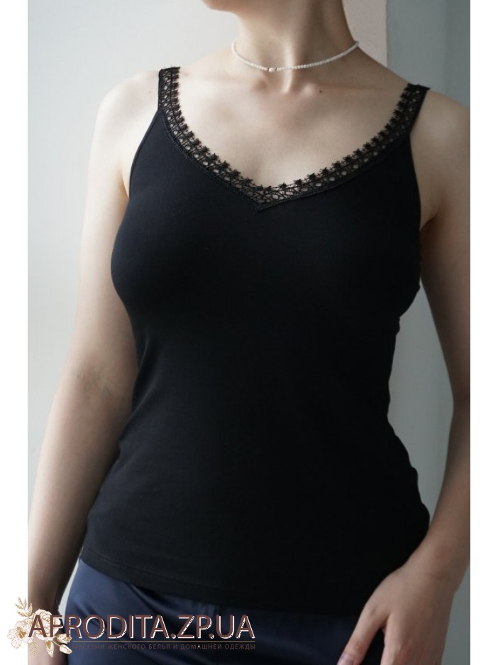 Бавовняна майка Janira 40123 з вишитою аплікацією вздовж декольте та на бретелях.