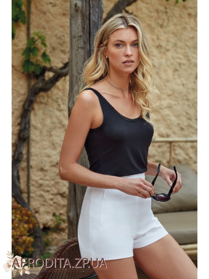 Жіноча майка із сучасною аплікацією з маленьких фестонів вздовж декольте від іспанського бренду Janira.