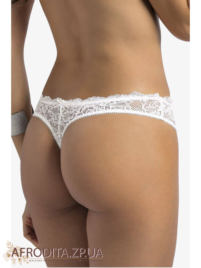 Трусики стринг Sielei 1973 з середньою лінією талії, виконані з еластичного мережива з квітковим орнаментом. Листівці бавовняна. Декор - атласний бантик.