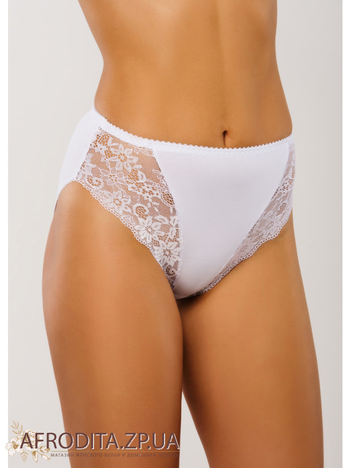Труси жіночі з кружевомІзделіе дуже хорошої якості з трикотажного полотна і мережива. Модель з високою лінією талії, закриті. Склад трикотажного полотна: бавовна-92%, лайкра-8%. Склад мережива: нейлон-88%, еластан-12%.