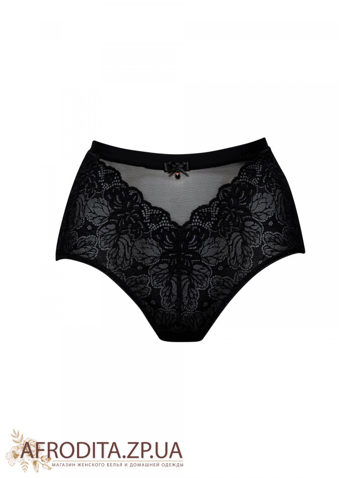 Труси-бразиліана із завищеною лінією талії. Пояс з мікрофібри, всередині еластична гумка. Передня деталь з мережива на підкладці з сітки. Задня деталь з мережива і еластичної сітки.