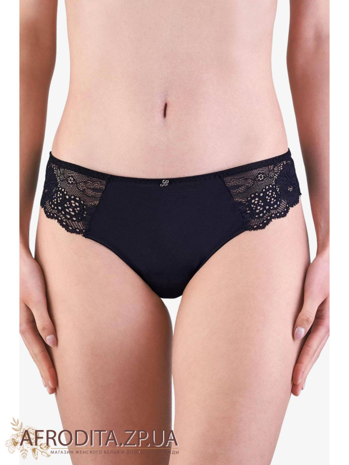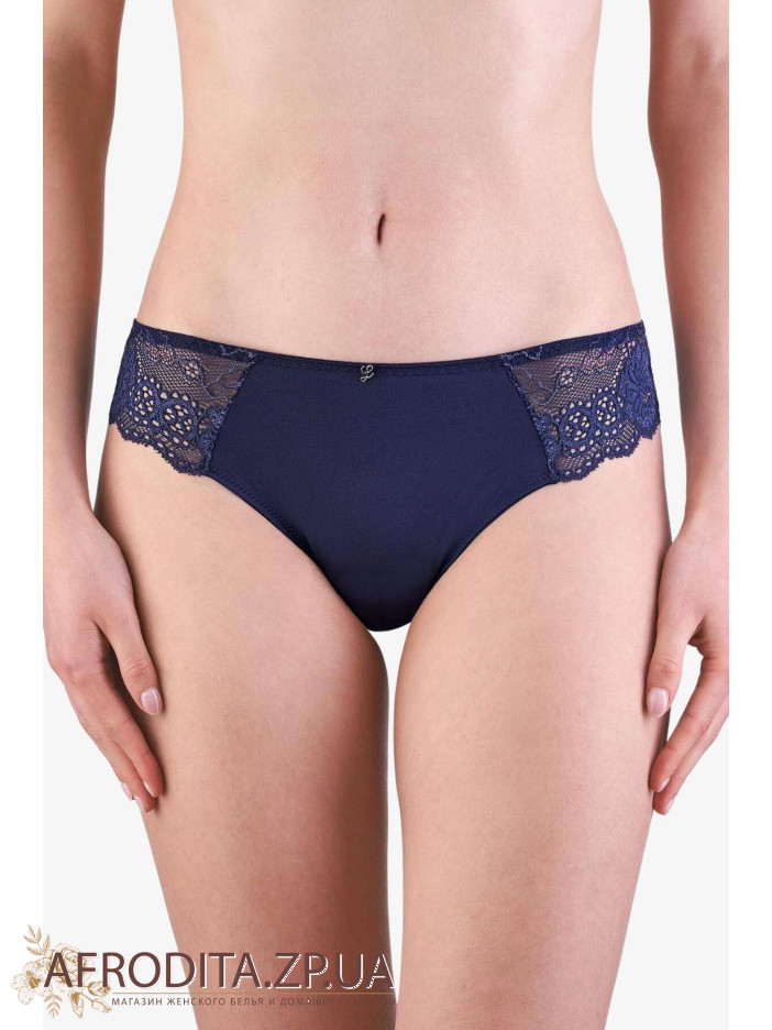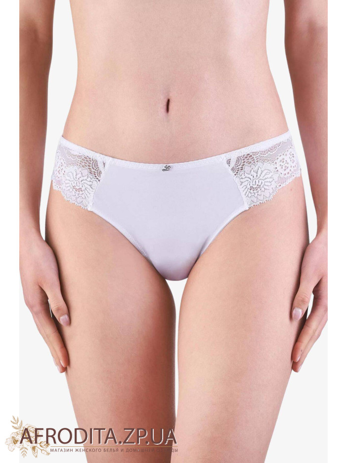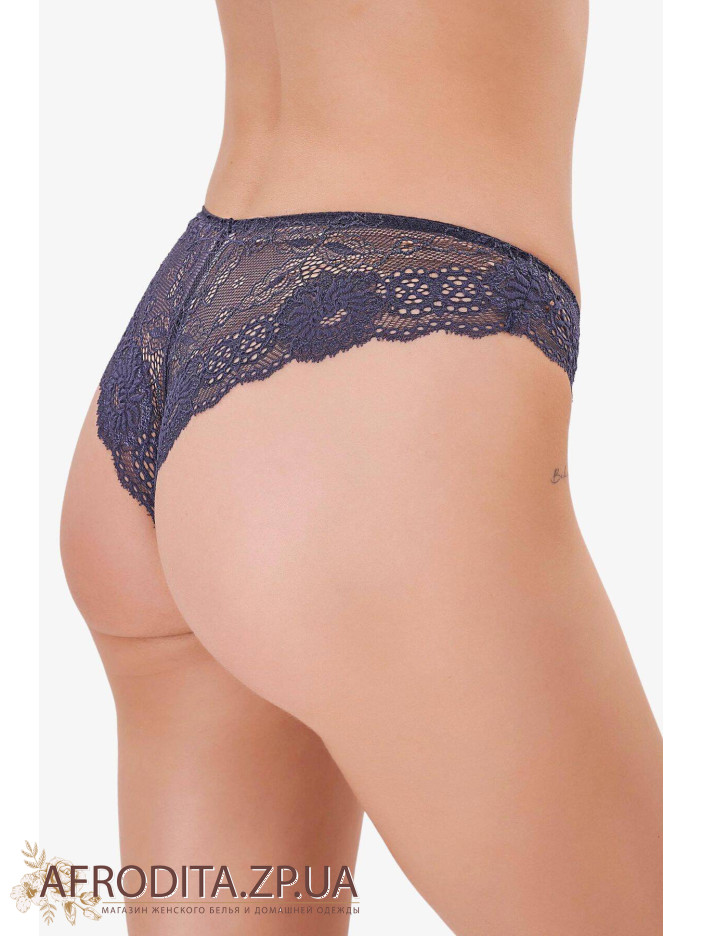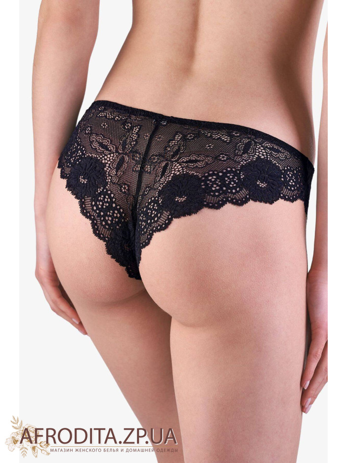 Труси бразилиана з середньою лінією талії. Виконано з еластичної м'якої мікрофібри з ефектом блиску і мережива з рослинним орнаментом плетіння. Склад: 81% поліамід, 19% еластан.