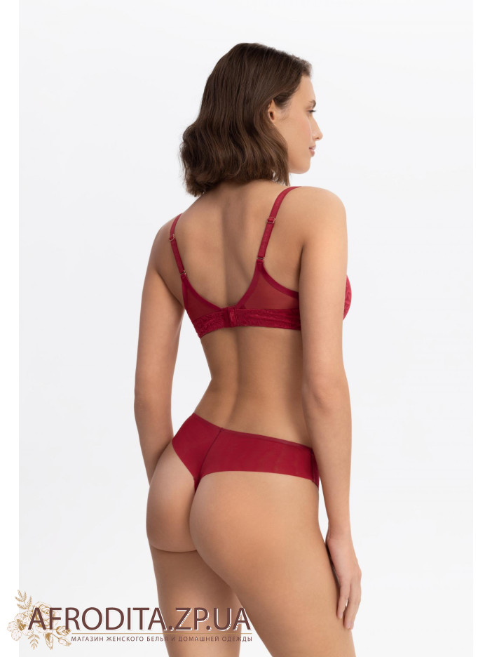 Безшовні труси-стрінги з низькою посадкою. Передня деталь з мережива. Задня деталь з еластичної сітки в підворіт.