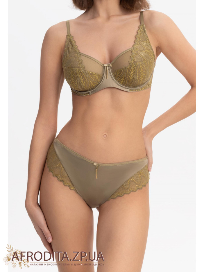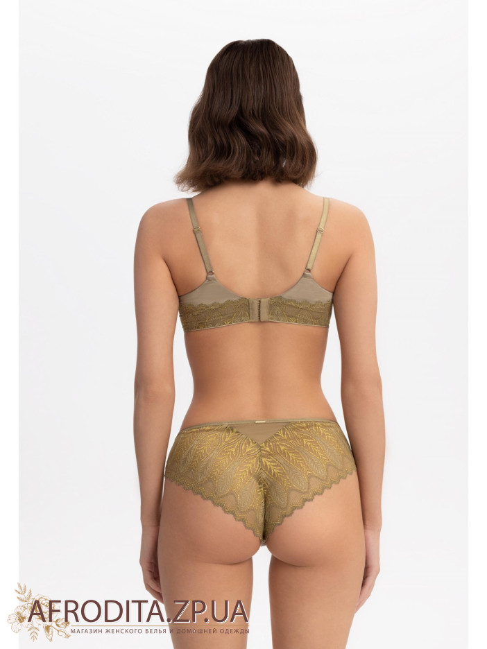 Труси-бразиліана із середньою лінією талії – це баланс між відвертістю та елегантністю. Їхній силует підкреслює форму, не сковуючи рухів. Атласна мікрофібра і ніжне мереживо на передній деталі створюють гармонію фактур, а мереживна задня деталь з ажурним краєм виглядає особливо витончено.