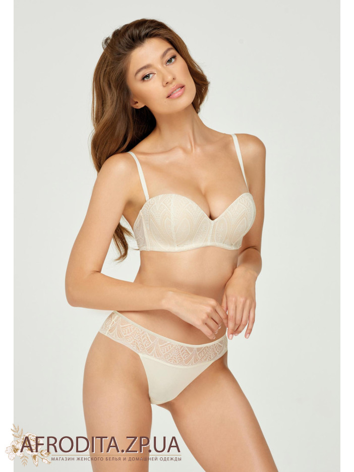 Труси-стрінги з середньою лінією талії. Передня і задня деталь по лінії талії виконані з еластичного мережива.