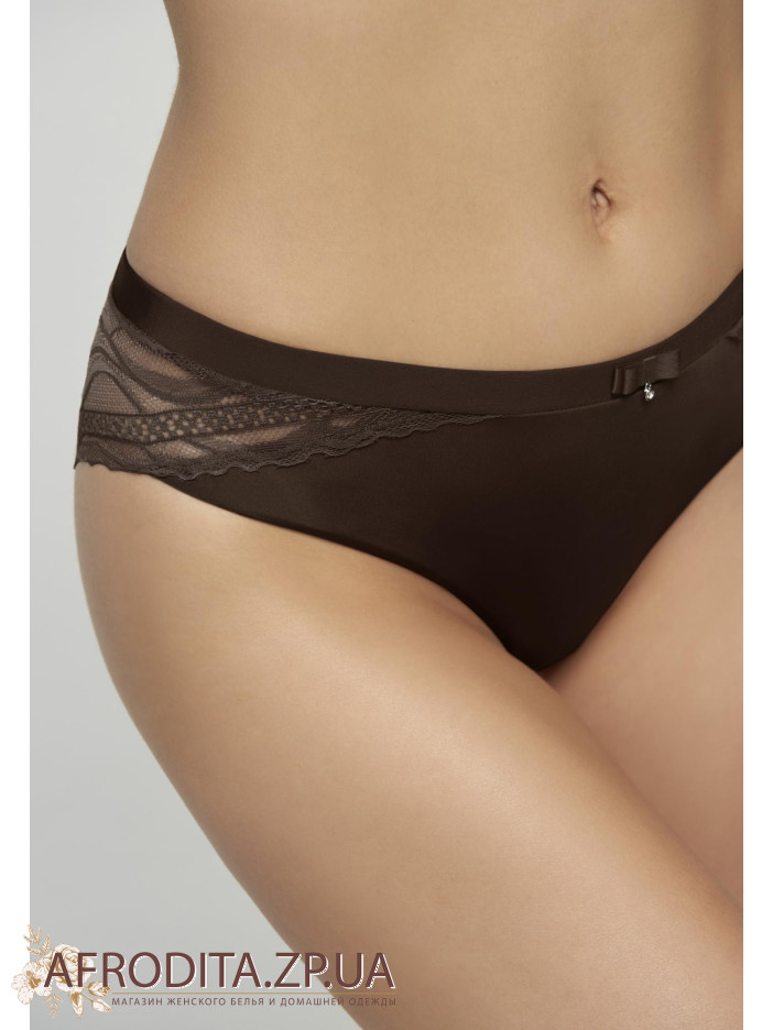 Труси-бразиліана Marc & Andre S23-0493-BZO-LZ із середньою лінією талії. Передня деталь з мікрофібри на підкладці, чистий край по лінії бікіні. На задній деталі мереживні вставки. М'який еластичний пояс із мікрофібри з гумкою всередині.