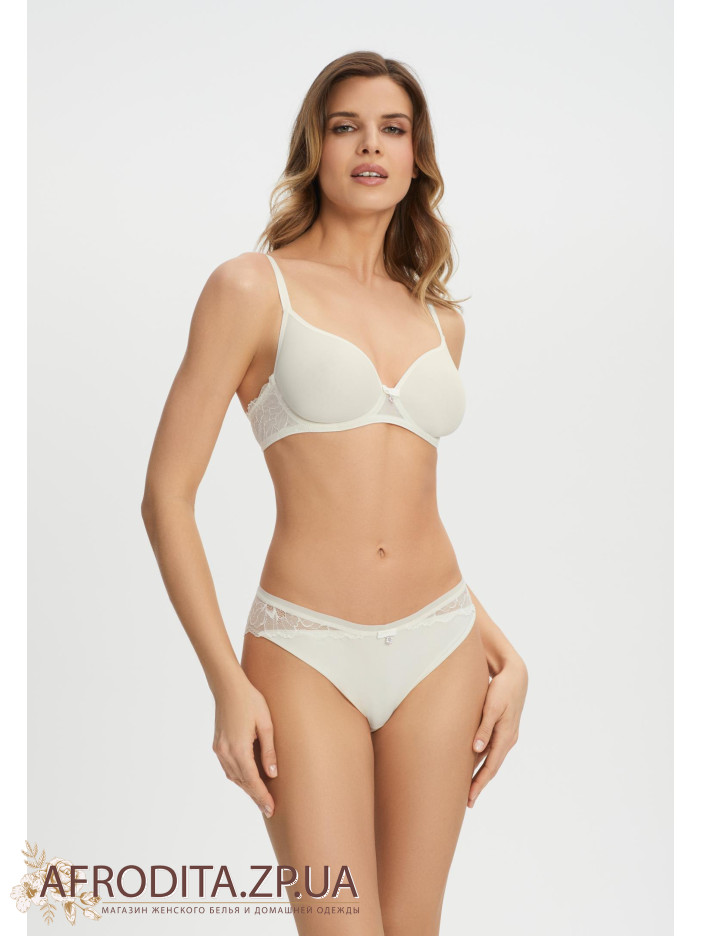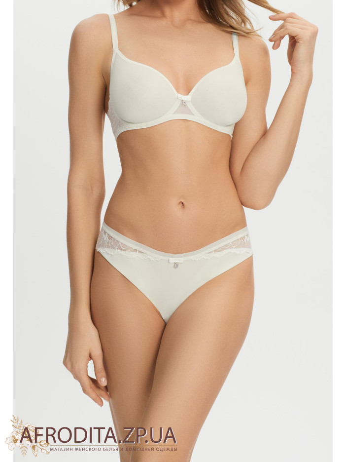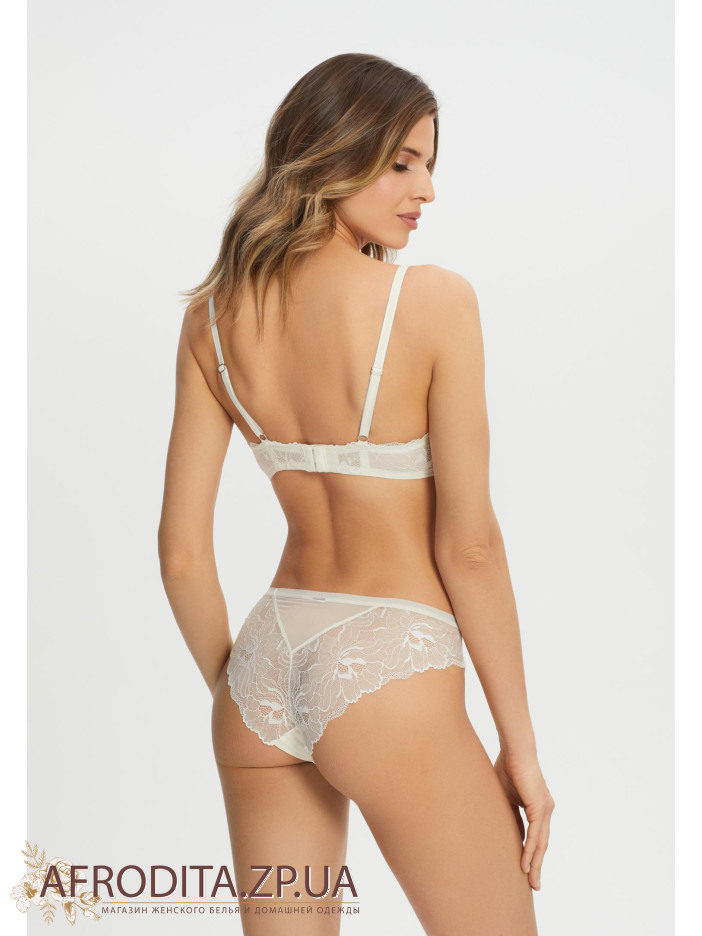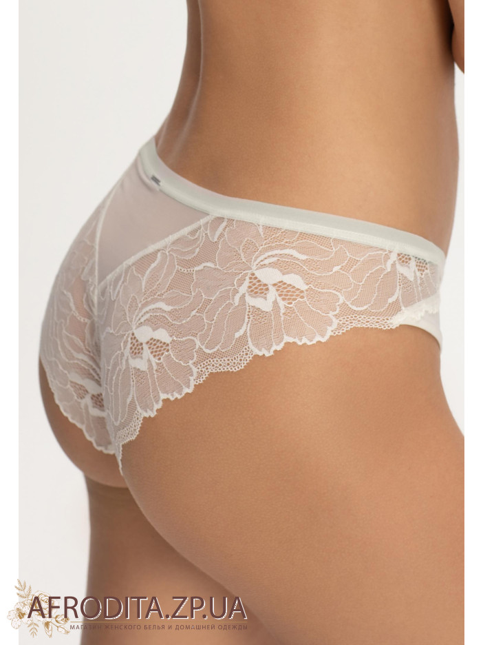 Труси-бразиліана із середньою посадкою. М'яка еластична тасьма по верхньому краю. Передня деталь із мікрофібри. Задня деталь виконана з мережива з ажурними краями.