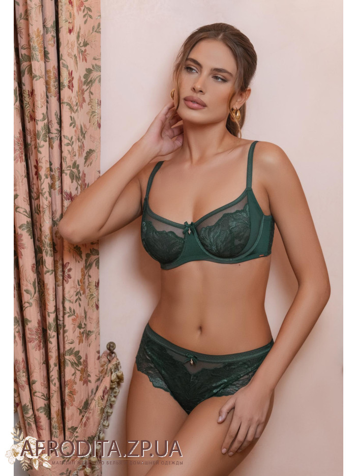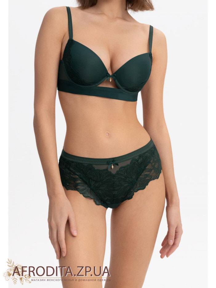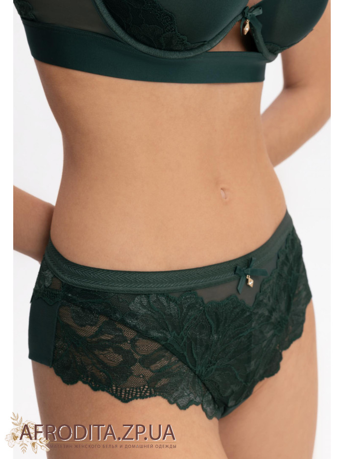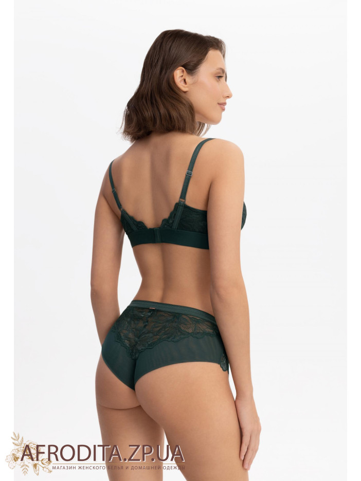 Труси-бразиліана з мережива із середньою посадкою. Пояс з м'якої еластичної тасьми дарує відчуття легкості. Передня частина з мережива на підкладці з сітки надає образу легкість і повітряність. Задня деталь поєднує мереживо і подвійну сітку в підворіт — елегантне і грайливе поєднання.