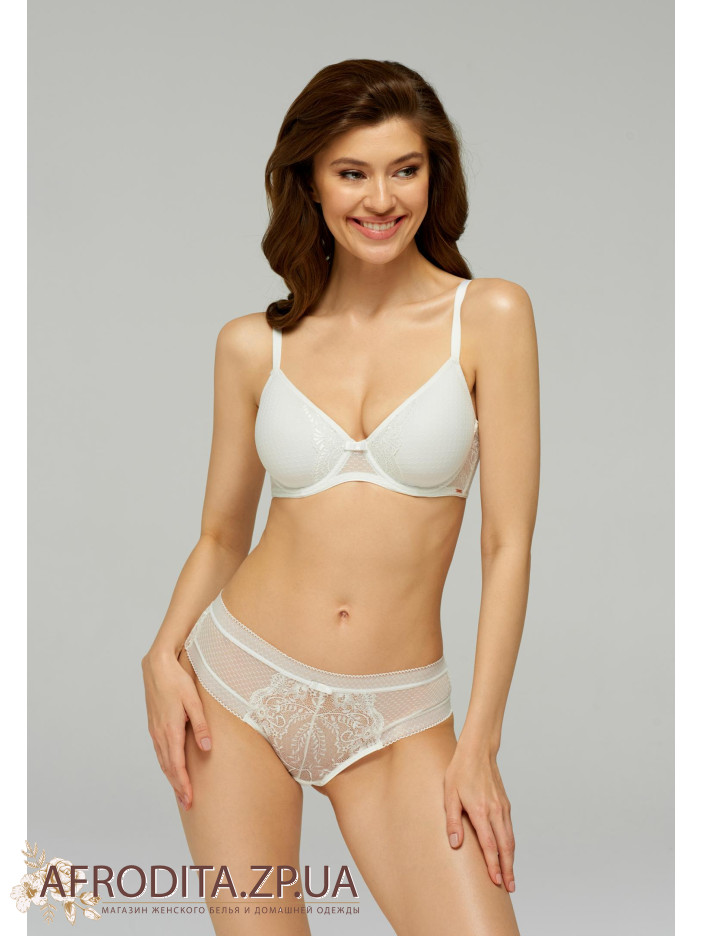 Бюстгальтер с формованной чашкой "Spacer" на каркасной поддержке. Стан дублирован эластичной сеткой. Круглая спинка. Отделка чашки сеткой и кружевом.