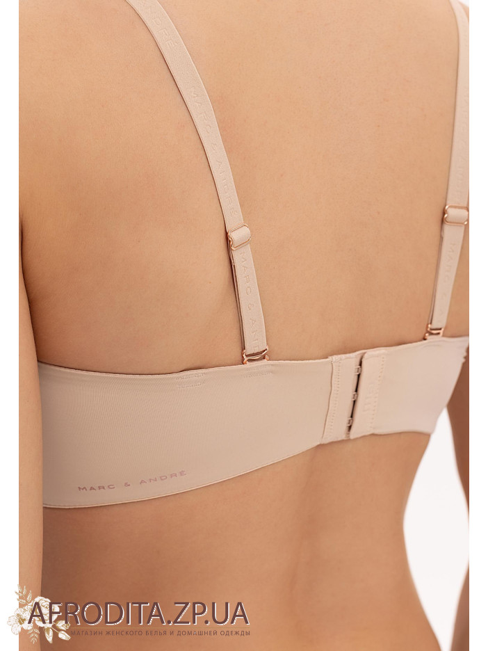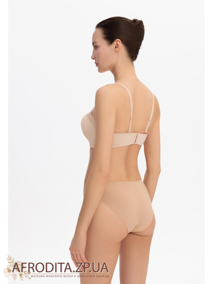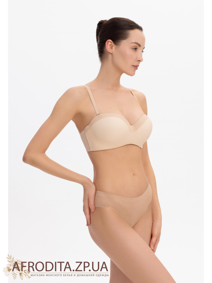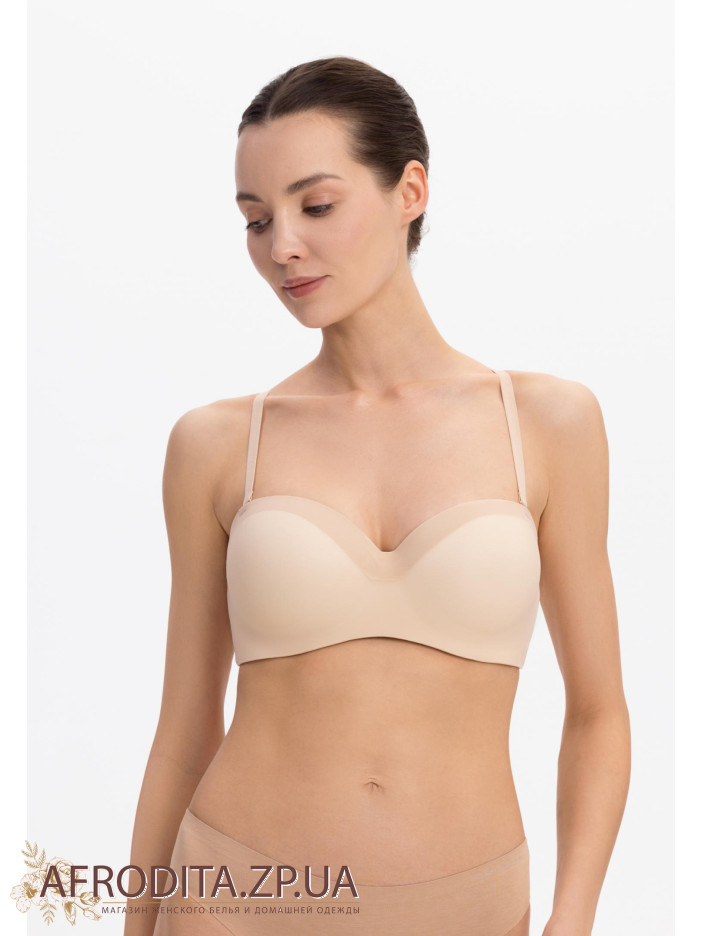 Бюстгальтер-балконет с формованной чашкой на каркасной силиконовой поддержке. Эффект «скрытого каркаса». Боковые косточки. По верхнему и нижнему краю идет силиконовая лента. Съемные регулируемые бретели.