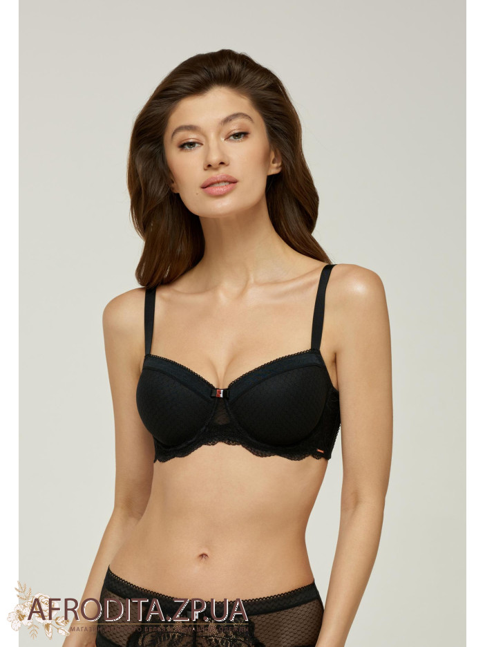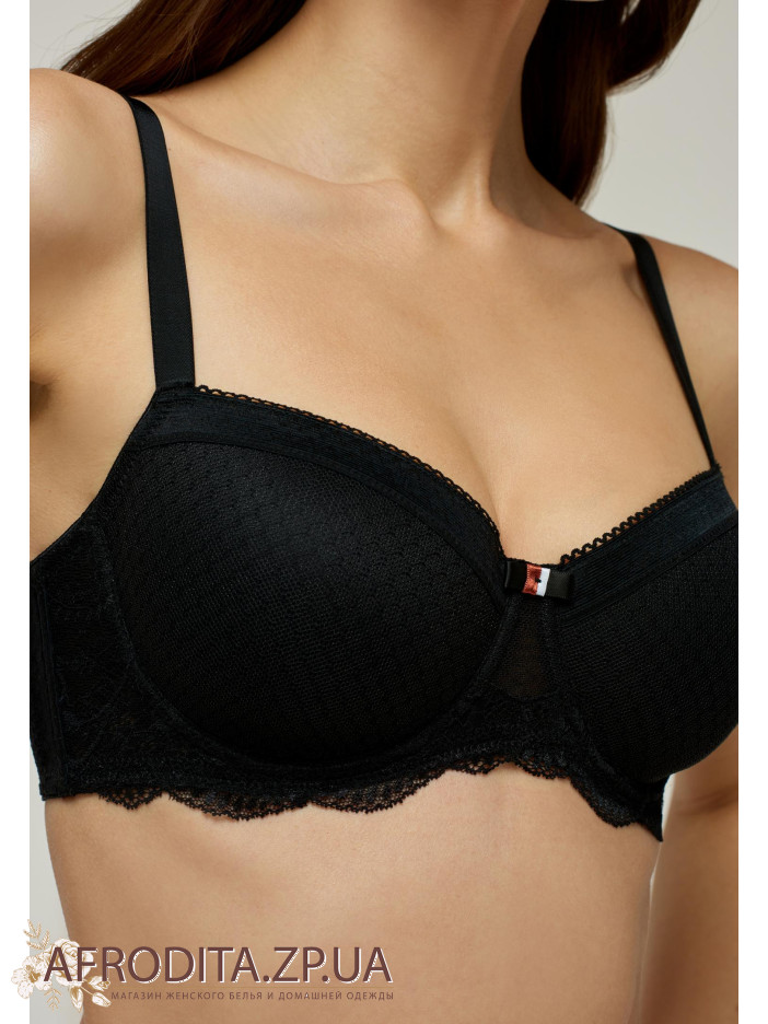 Бюстгальтер на каркасной поддержке с формованной чашкой. Модель прекрасно подойдет обладательницам пышных форм. Состояние дублировано эластичной сеткой. Спинка круглая. Боковые детали с косточками для поддержки. Регулируемые бретели. Декор – сатиновый бантик.