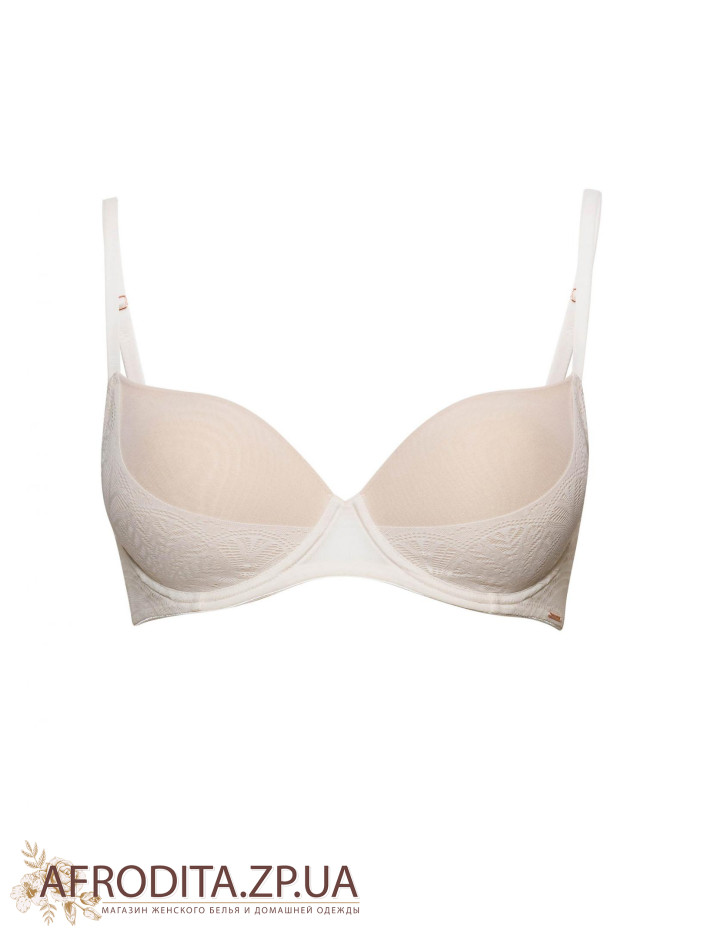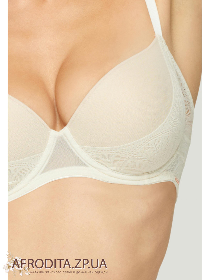 Бюстгальтер на каркасной поддержке с формованной чашкой и снимаемыми корректорами «пуш-ап». На боковой панели имеется перекресток деталей из мягкого кружева и эластичной сетки. Регулируемые бретели.