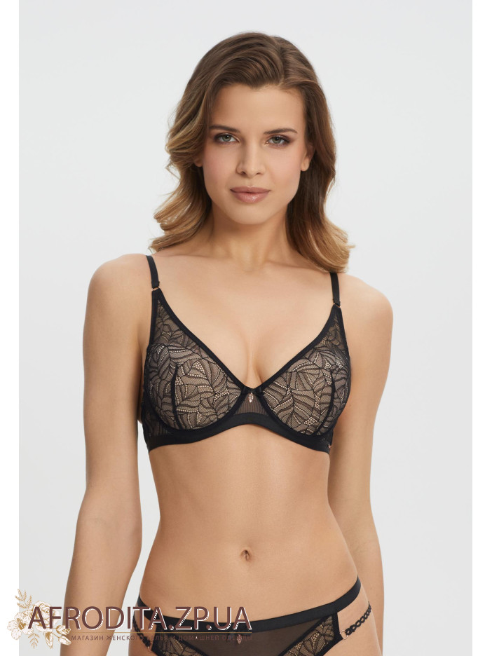 Бюстгальтер с формованной чашкой на косточках. Линия декольте V-образной формы придает бюстгальтеру необычный шарм. Мягкий пояс выполнен из двойной сетки. Бретели на спинке сдвоенные, выполненные в виде перевернутой буквы Y, что создает весьма эротический эффект.