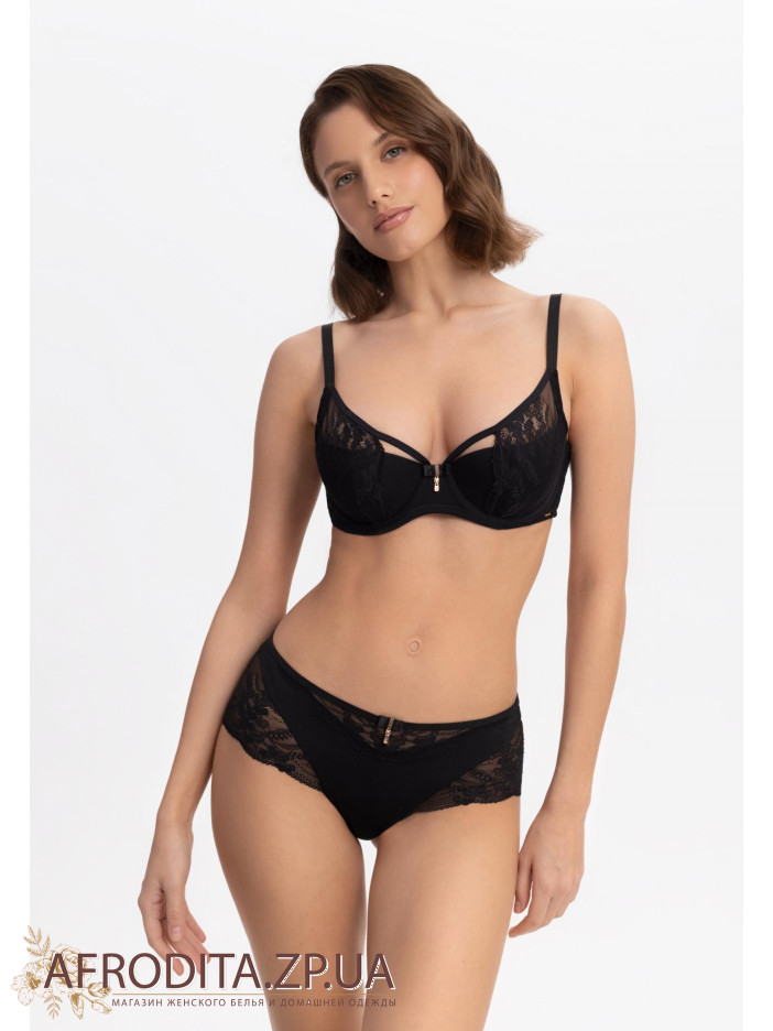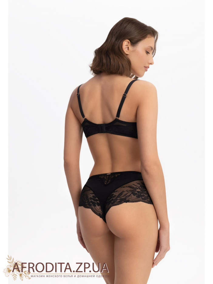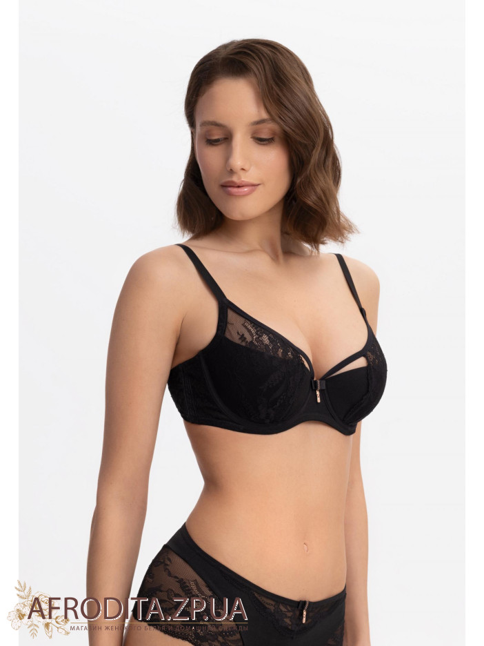 Бюстгальтер с полупаролоновой чашкой на косточках. Чашка спереди декорирована эластичным кружевом, с внутренней стороны, для комфорта выполнена из хлопка. Боковые детали из кружева на мягкой подкладке из сетки. Боковые поддерживающие косточки для лучшей и уверенной поддержки. Комфортна кругла спинка. Унікальний декоративний елемент у вигляді декоративної блискавки — стильний штрих, який не залишиться непоміченим.