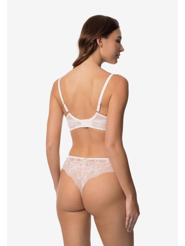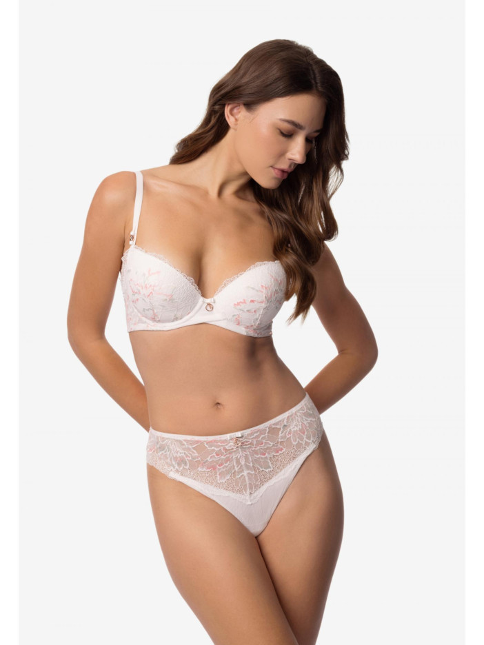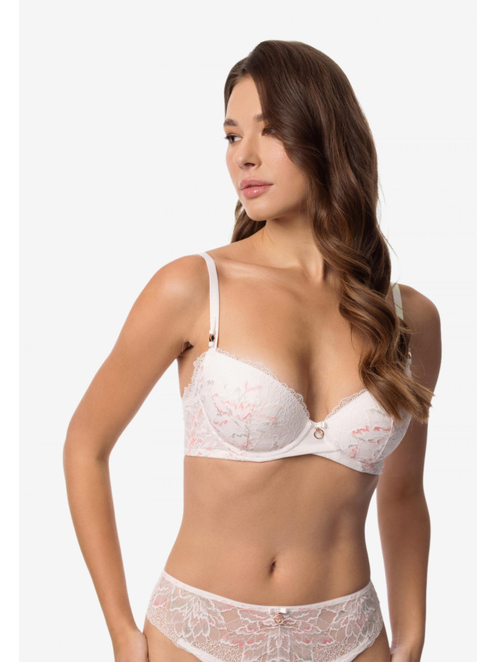 Серия ADORE – воплощение чистой гармонии и нежности. Натуральный белый оттенок кружева с изысканными ажурными краями создает ощущение нежности и воздушности. Он служит идеальным фоном для изящных цветовых акцентов, а живая и радостная палитра серии придает образу свежести и внутреннего равновесия. Бюстгальтер с формованной чашкой на каркасной поддержке обеспечивает идеальную форму и удобную посадку. Съемные корректоры пуш-ап позволяют подчеркнуть естественную линию груди или придать дополнительный объем. Внутренняя поверхность чашек дублирована мягким хлопком, который нежно касается кожи, обеспечивая комфорт в течение всего дня. Боковые панели украшены изящным переплетением деталей из сетки и кружева, что придает модели особую элегантность и изысканный штрих. ADORE – это серия, предназначенная для тех, кто ценит гармонию, чувственность и утонченный стиль.