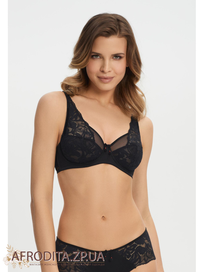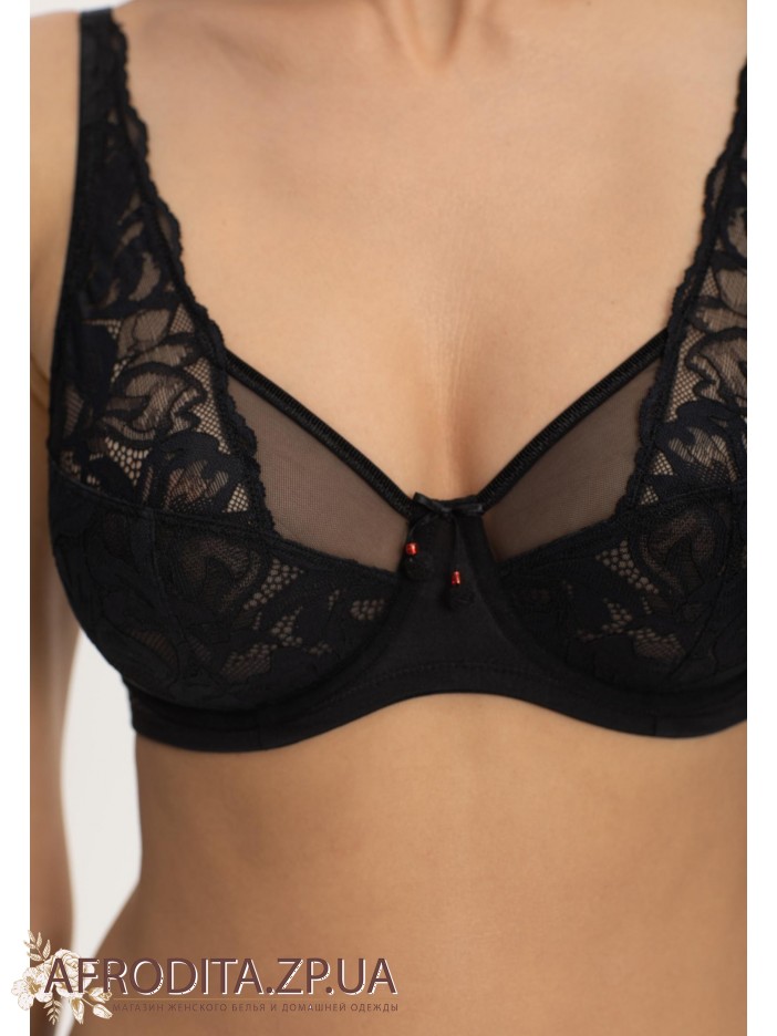 Бюстгальтер с мягкой чашкой на косточках. С внутренней стороны чашка продублирована тонкой эластичной сеткой, что обеспечивает отличную посадку. Чашка выполнена из двух материалов: эластичная сетка и изысканное кружево. Круглая спинка. Боковые поддерживающие косточки. Широкий размерный ряд. Бюстгальтер идеально подходит для обладательниц пышных форм.