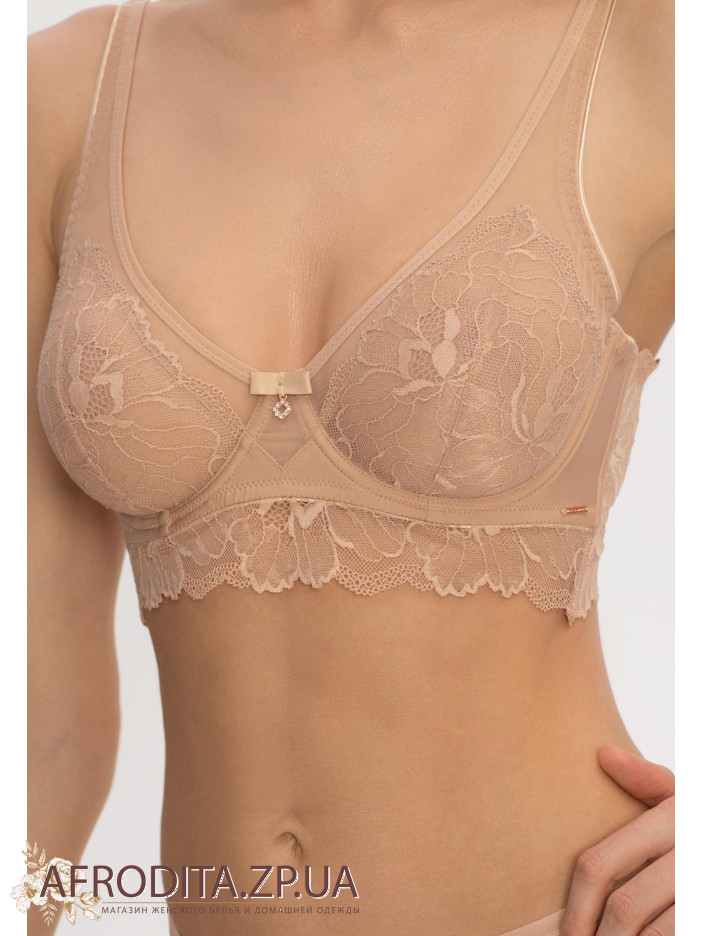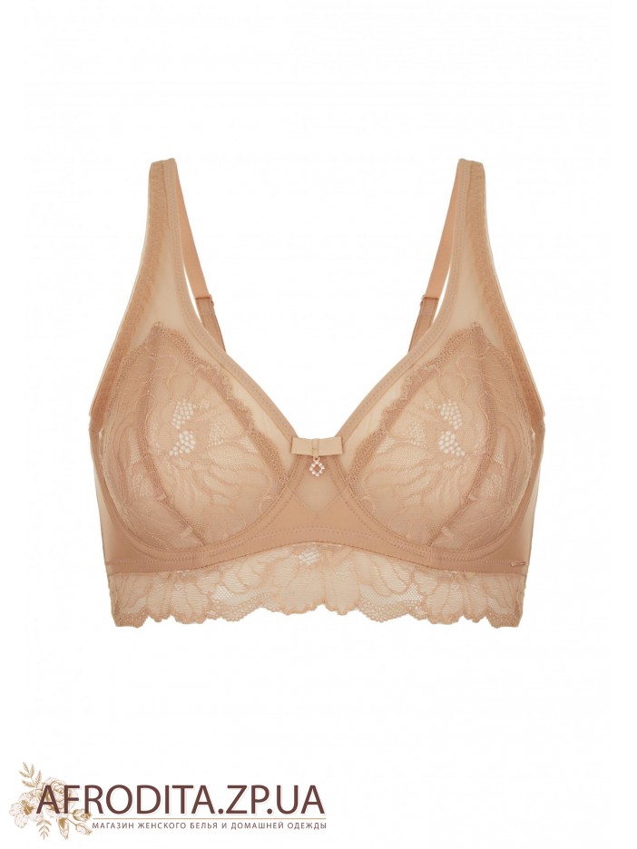 Бюстгальтер с мягкой кружевной чашкой на косточках. С внутренней стороны чашки продублированы тонкой эластичной сеткой, что обеспечивает отличную посадку. Мягкие кружевные чашки придают бюстгальтеру нежность и элегантность, а слегка удлиненное состояние романтического настроения. Широкая комфортная спинка. Бюстгальтер идеально подходит для обладательниц пышных форм, помогая им выглядеть еще более привлекательно и уверенно.