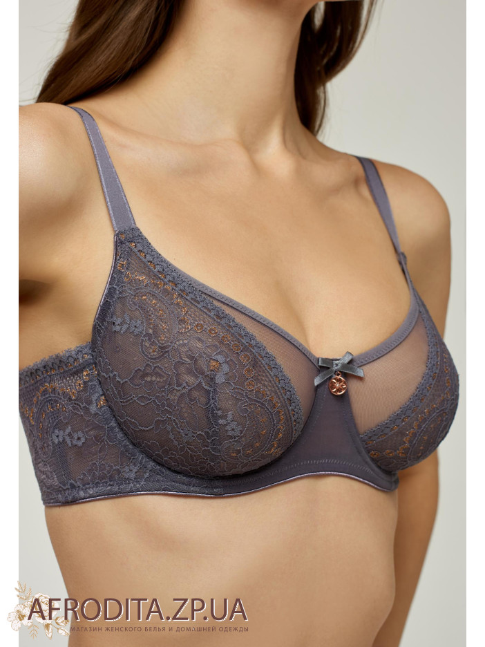 Бюстгальтер на каркасной поддержке с мягкой чашкой. Для идеальной посадки. Внутренняя поверхность чашки дублирована эластичной сеткой. Боковые детали со скрытыми поддерживающими косточками. Мягкое кружевное состояние дублированное эластичной сеткой. Регулируемые бретели. Декор – бантик с подвеской.