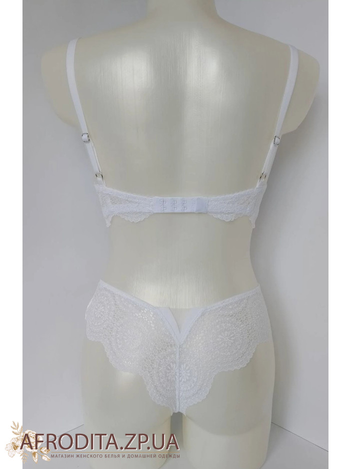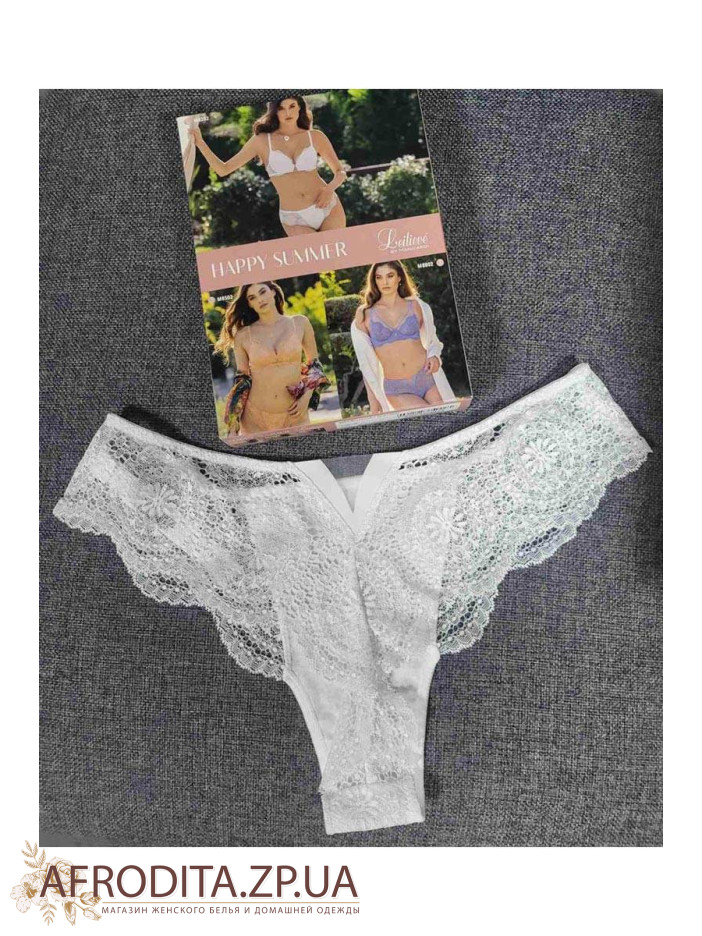 Бюстгальтер на косточках с формованными чашками пуш ап придает груди соблазнительные формы визуально создавая небольшой дополнительный объем. Бретели несъемные. Застежка на два крючка и четыре позиции объема. Сексуальные трусики бразилиана. Комплект изготовлен из ажурного кружева с фестончатыми краями. Белье Leilieve HAPPY SUMMER - это изысканный выбор для женщин, ценящих комфорт и итальянский шик.