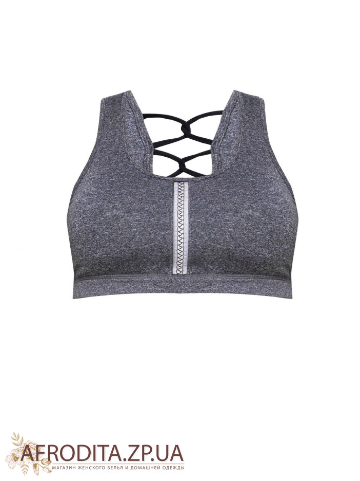 Топ с мягкими вшитыми чашками. На передней детали декоративная вставка из сетчатого полотна. На спине переплетение в виде «спагетти».