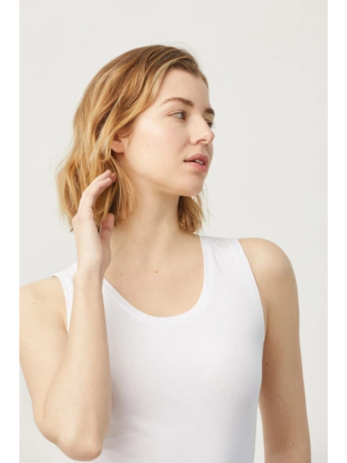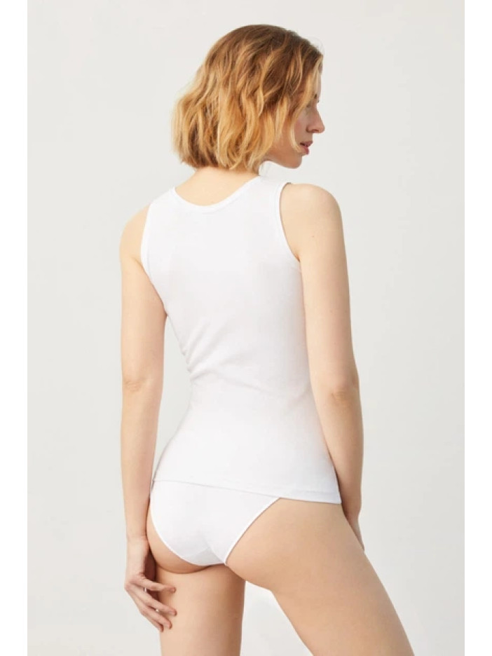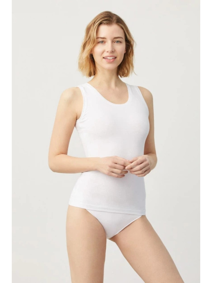 Белая женская майка из хлопка от Ysabel Mora — универсальный базовый трикотажный топ с округлым вырезом и широкими бретелями, созданный для максимального комфорта. Модель полностью закрывает торс, мягко выравнивает силуэт под одеждой и обеспечивает лёгкую деликатную поддержку без ощущения сдавливания. Идеальный вариант, когда хочется заменить бюстгальтер в повседневных образах, домашних комплектах или в поездках, сохраняя свободу движений и аккуратный внешний вид.