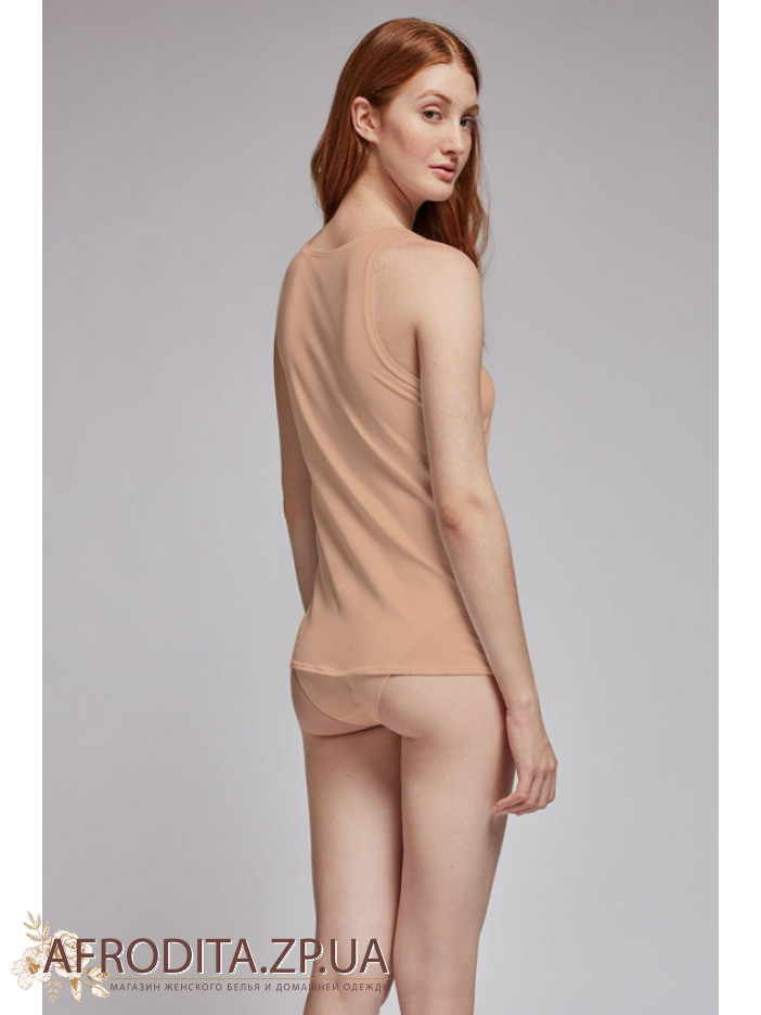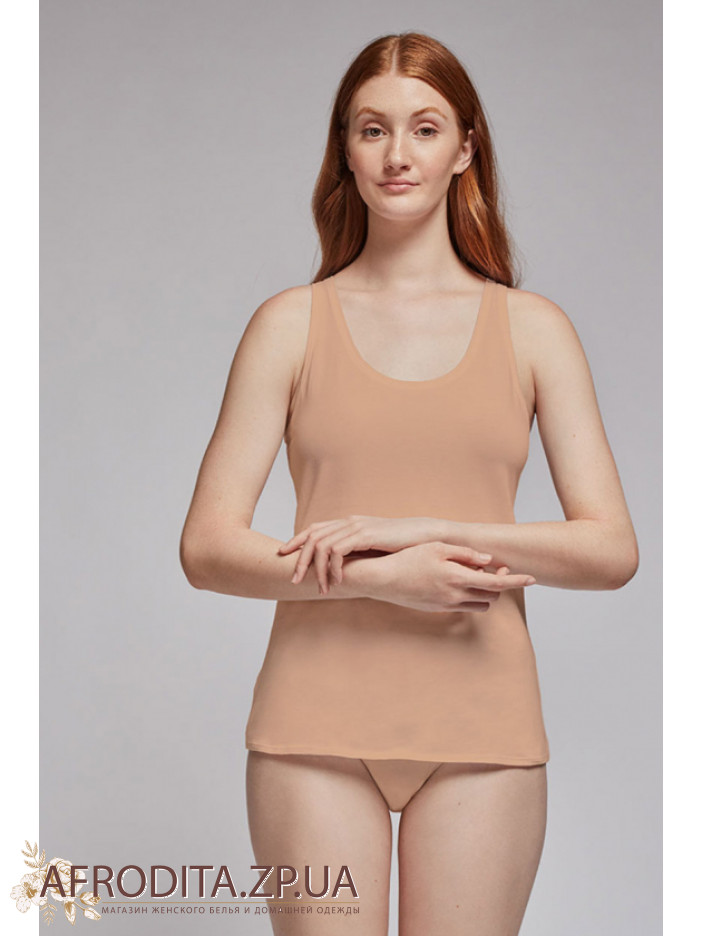 Хлопковая майка от испанского бренда Gisela. Вырез декольте имеет окантовку для противодействия растяжению. Бретели широкие. Модель можно носить и в качестве повседневной одежды.