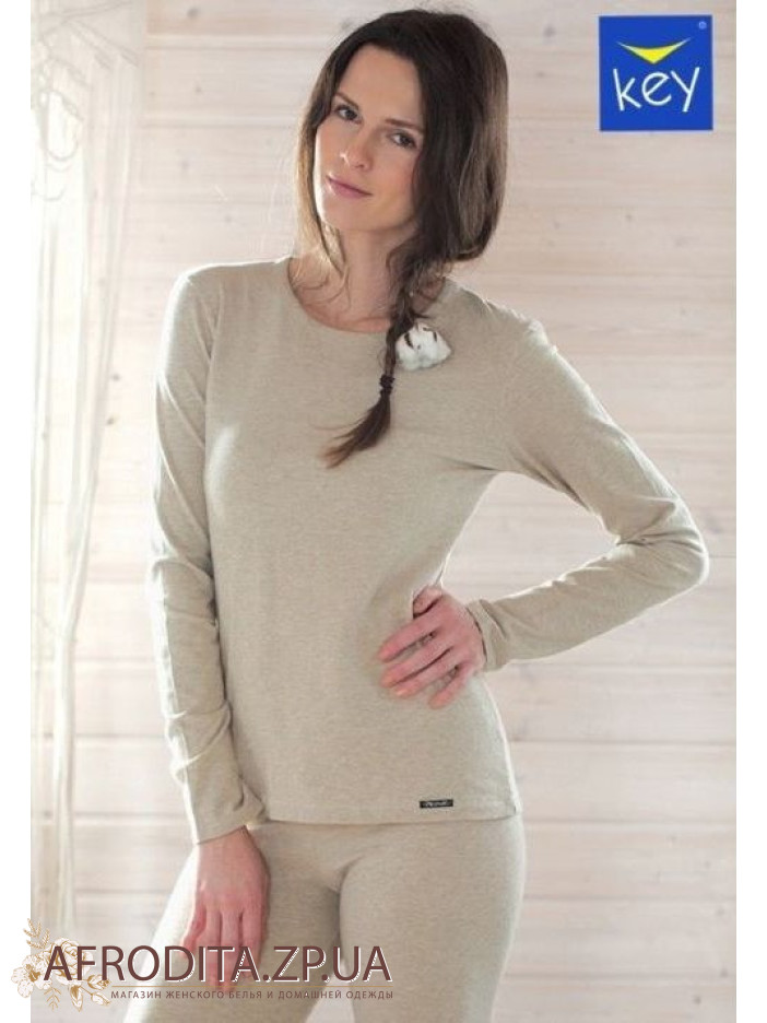 Женская термо-кофта с длинным рукавом из трикотажа с двусторонним начесом. Кофта с полукруглым вырезом и удобными резинками на запястьях.