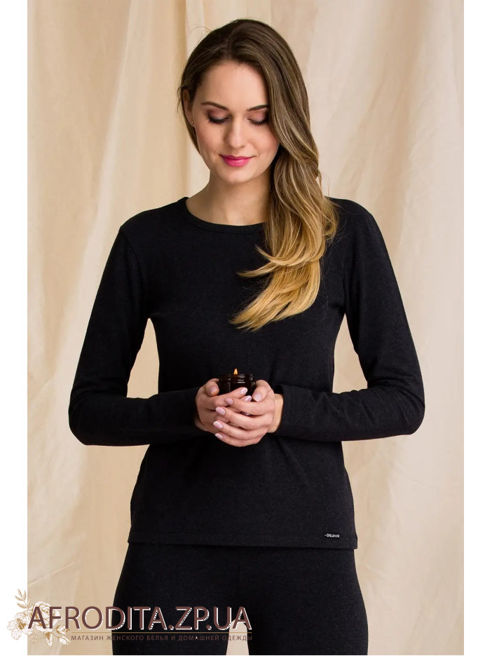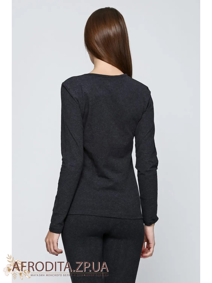 Женская термо-кофта с длинным рукавом из трикотажа с двусторонним начесом. Кофта с полукруглым вырезом и удобными резинками на запястьях.