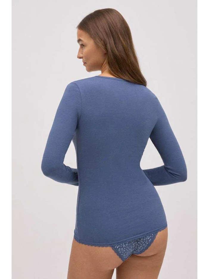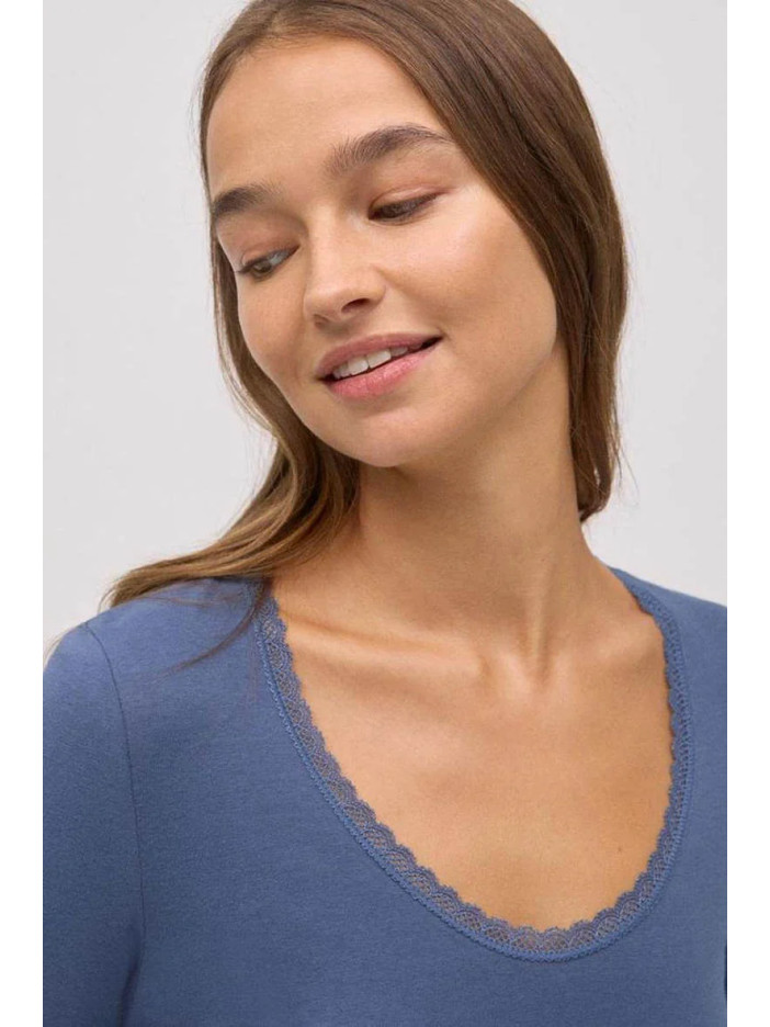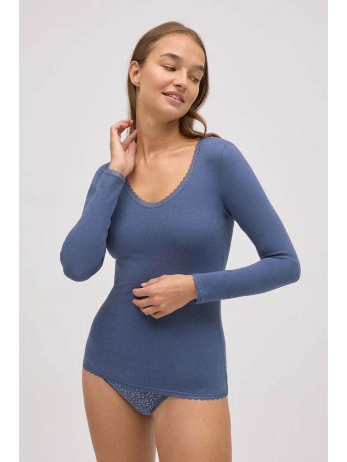 Женский хлопковый лонгслив Ysabel Mora — лёгкий трикотажный топ с длинным рукавом для многослойных образов, повседневной носки и домашнего уюта. Эластичный голубой джерси мягко повторяет линии фигуры, создавая стройный силуэт без ощущения скованности и дискомфорта. Идеальный базовый элемент гардероба, который легко сочетается с джинсами, юбками и жакетами.