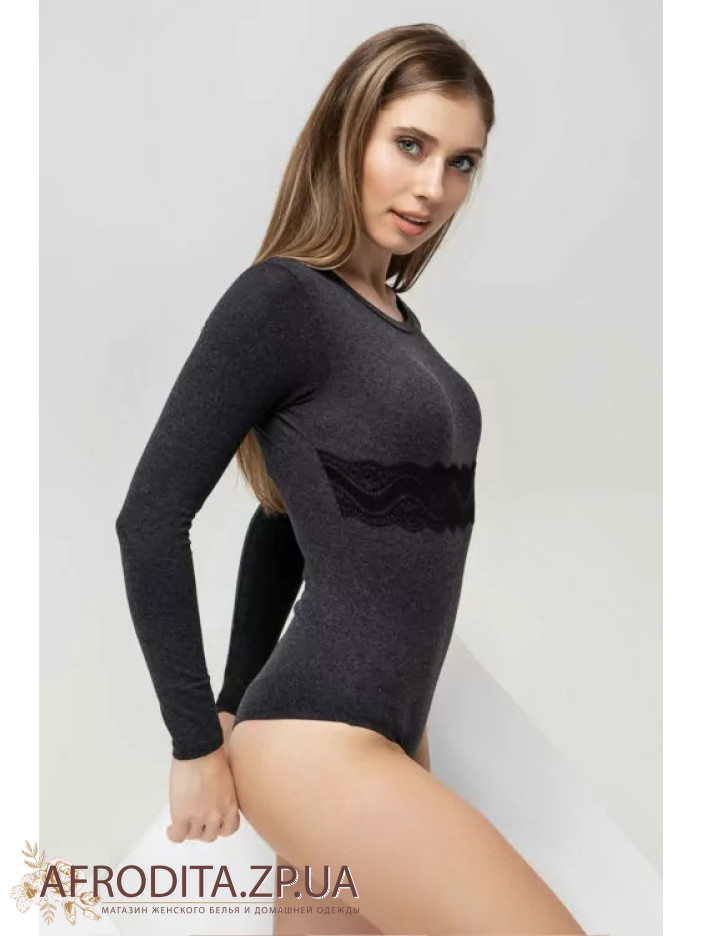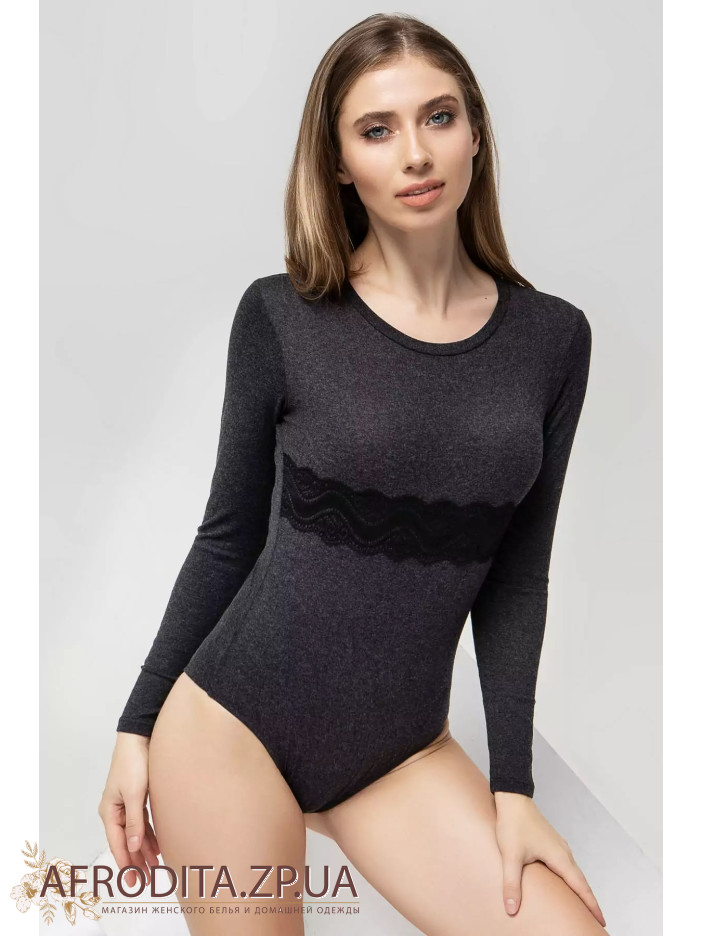 Женский термободи из натуральной вискозы с добавлением шерсти с длинными рукавами и округлой формой горловины.