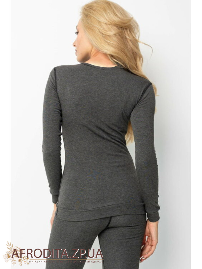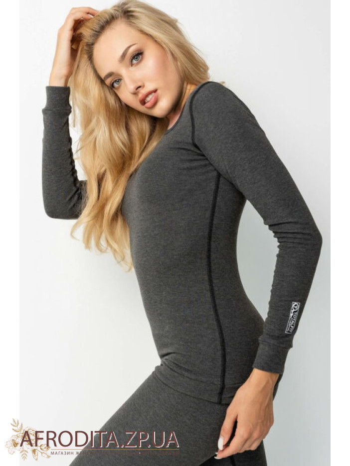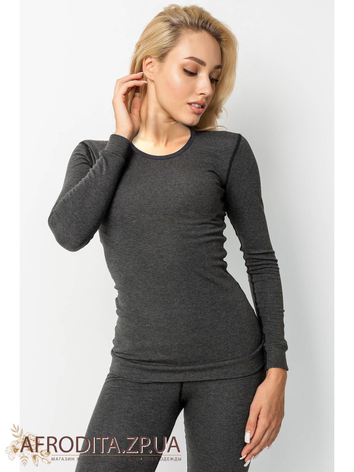 Женская термофутболка с длинными рукавами. Горловина имеет округлую форму.