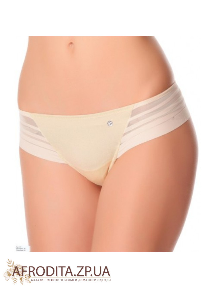 Гладкие классические трусы-стринги Sielei 1503. Задняя и боковые части выполнены из полупрозрачной ткани в полоску в виде пояса. Ластовица из хлопка. Лазерная обработка края.