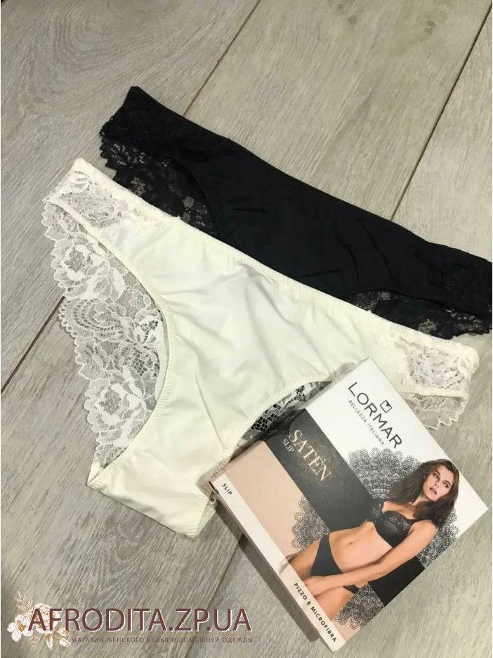 Выполнены из эластичного полотна с микрофиброй и эластичного кружева. Верхний срез и срез проймы передней детали обработаны тонкой тесьмой, срез проймы задней детали - ажурное кружево. Ластовица хлопковая.