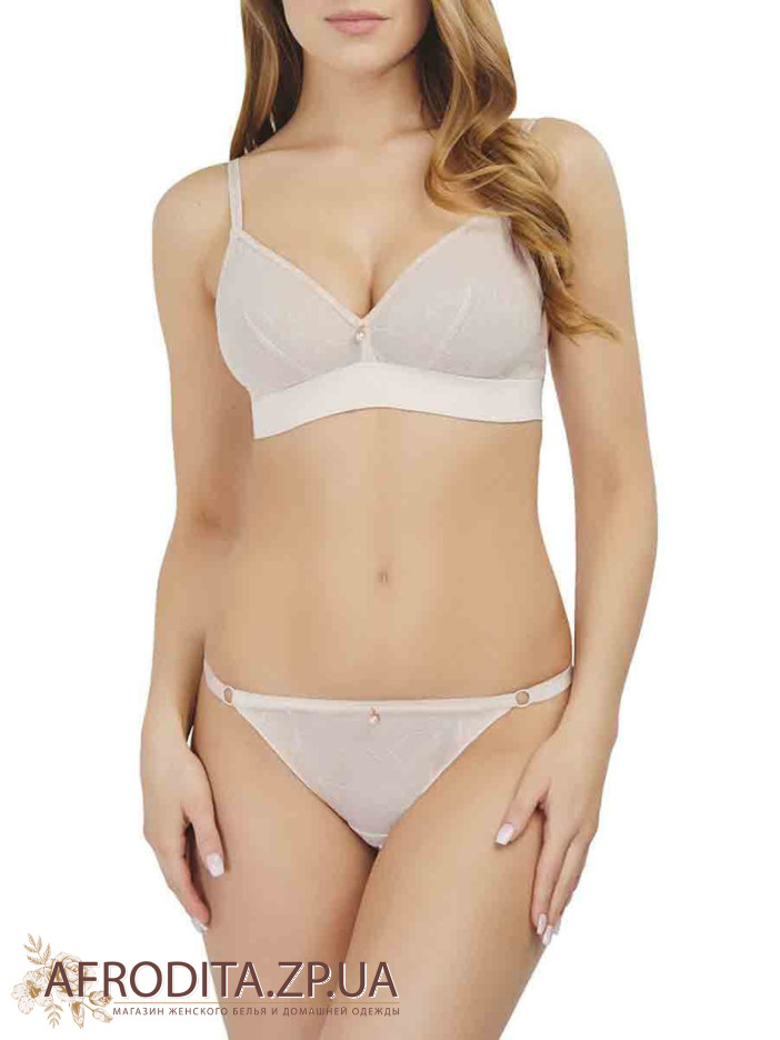 Трусики - стринги. Средняя линия талии. Узкая боковая часть. Передняя деталь из эластичного кружевного полотна на подкладке из сетки. Задняя деталь на подкладке с чистым краем. Бархатистая резинка на поясе. Ластовица - хлопок.