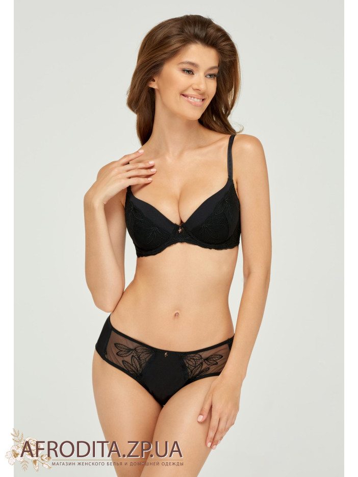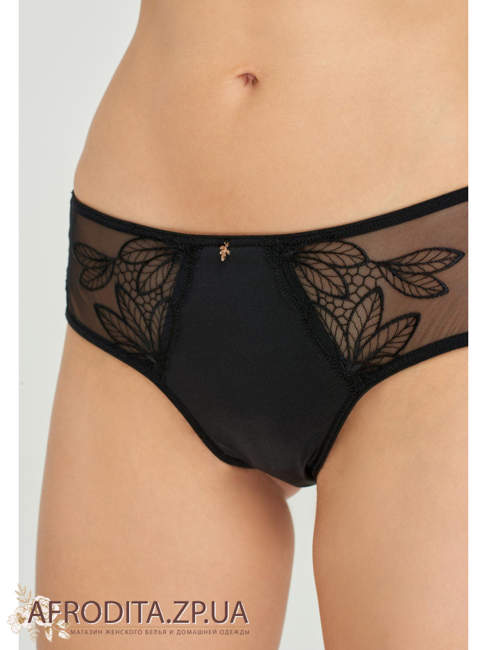 Трусы-бразилиана со средней линией талии. Боковые вставки из вышивки с ажурными краями. Декор – подвеска.
