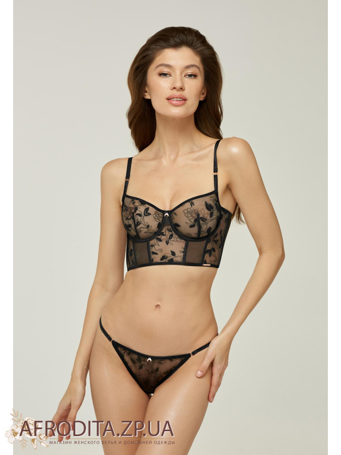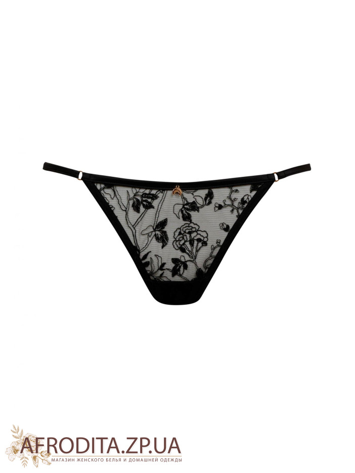 Трусы-стринги с заниженной линией талии. Передняя деталь из сетки с вышивкой. Задняя деталь из эластичной сетки. Декор - медальон "Луна".