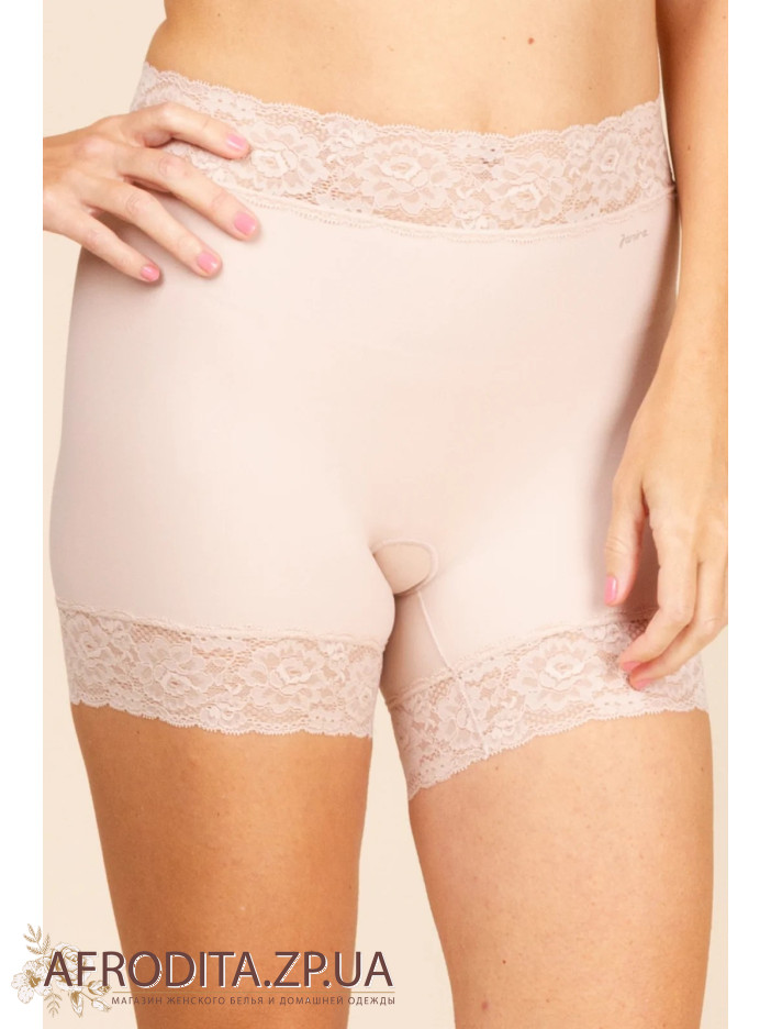 Шортики из эластичного холста от испанского бренда Janira. Шортики не имеют боковых швов, по линии талии и внизу по ножкам украшены мягким кружевом.